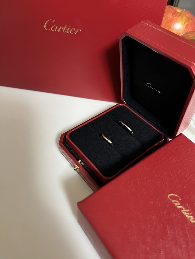 私は指が白くて細いわけではなく、黒めでむちっとしているのでピンクゴールドの色が指に付けても違和感がなく即決しました。また形も少しカーブのあるデザインで、指が細く見える気がします!