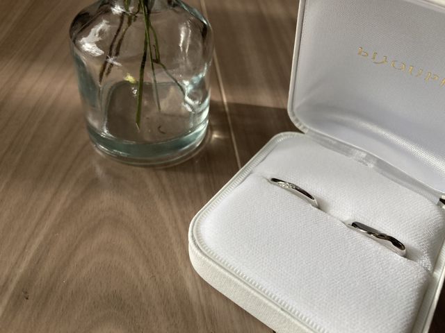 少し石が入っているものがよかったけど、ウェーブだと石が入っている幅が広すぎたり、メンズのデザインがいまいちだったりしたので、石が多すぎなくてちょうどよかったのでこちらにしました。リングがストレートなのもよかったです。