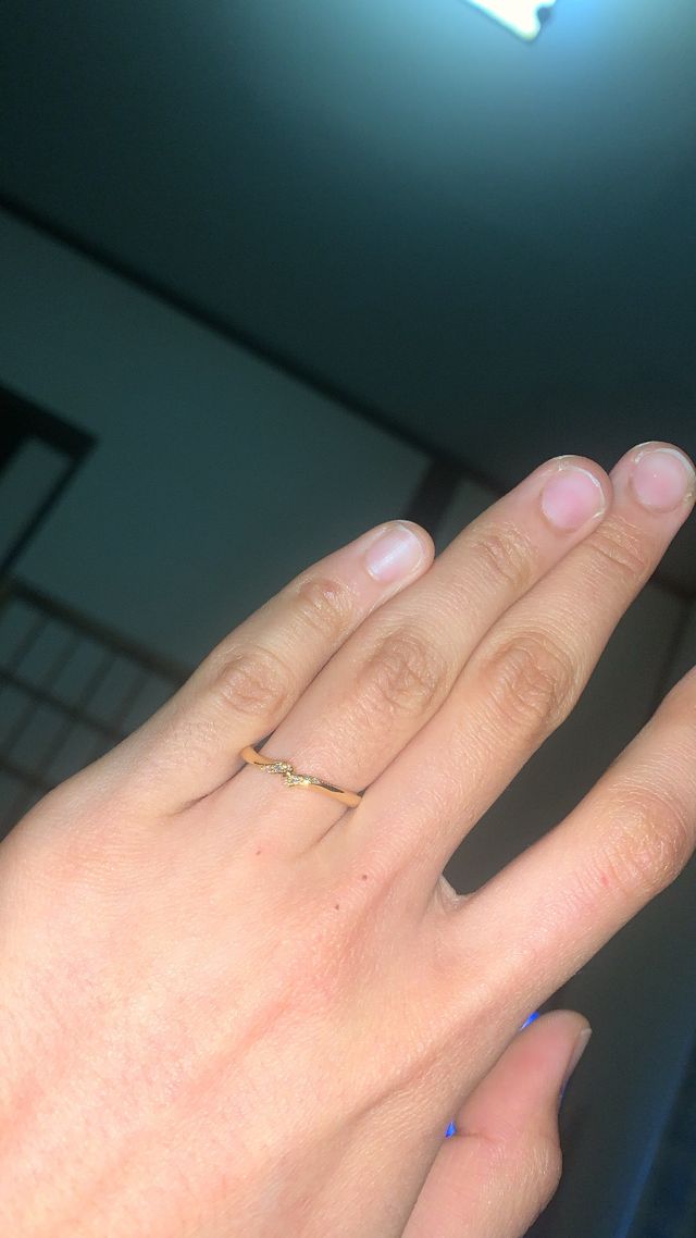 人と被らないデザインで一目惚れしました。私の指は骨太でゴツゴツしている為、華奢に見えるような指輪を選ばせていただきました♩着用してみると案の定、かわいく、そして指を華麗にみせてくれるなあという印象を受けました!