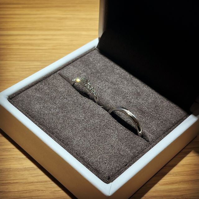 ゴージャスなデザインのものを探していましたが、なかなか思った物に出会えず、婚約指輪としての商品でしたが結婚指輪として普段使いも出来そうなところがオススメです。自分の指を見る度に気分が上がり嬉しいです。