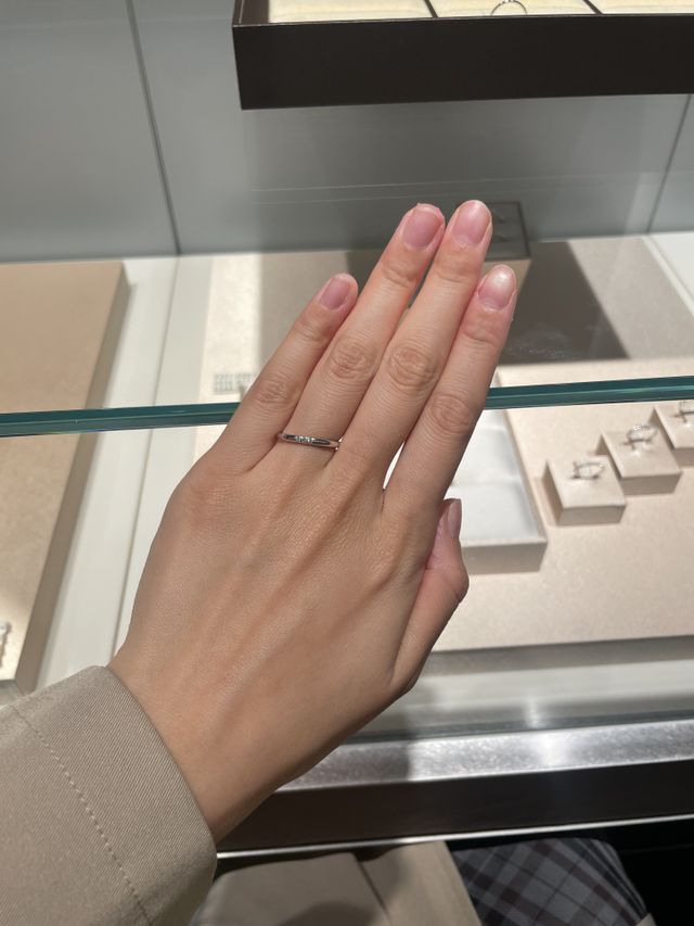 一生ものなので、年を重ねたときにもつけてワクワクするよう、自分の年齢より少し上の方々が主なターゲット層のブランドにしました。とても落ち着いた雰囲気と上品さが魅力的で、いくつかの店舗を見ましたが、どのお店でも押し売りせず、安定して丁寧な対応をしていただけたのが好印象でした。