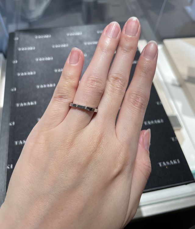 TASAKIのピアノはデザインが珍しく、試してみたい指輪のひとつでした。角張ったデザインではありますが、着け心地はなめらかで違和感はありませんでした。遠目で見るとプレーンなデザインに見えますが、近くで見るとオシャレでとても気に入りました。人と被らないものをお探しの人におすすめです。