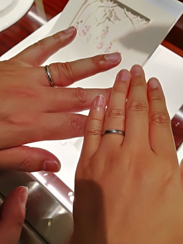 シンプルでなおかつ手元が華やかに見える指輪を探していました。色々な指輪を見るなかでミル打ちの指輪が欲しいと思い、色々見て回りました。ティファニーの指輪も候補であったのですが、ミキモトの指輪を着けたときの肌に吸い付く様な着け心地が私も彼も気に入ったのでこちらになりました。ミル打ちも凄く繊細に刻まれているので凄く上品な指輪です。