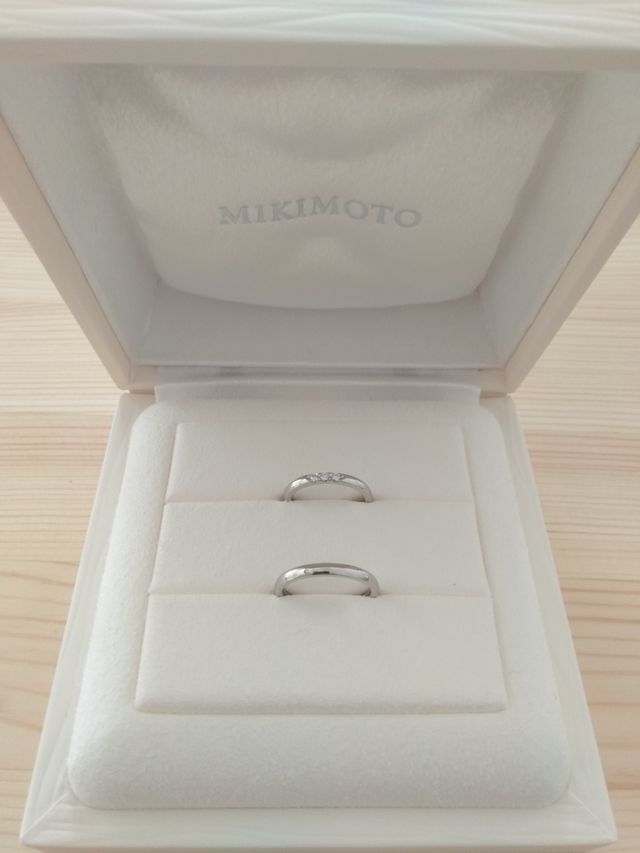 他のお店でも同じようなデザインの指輪を見ましたが、ミキモトが指輪自体の色や石の輝きが綺麗な気がしました。