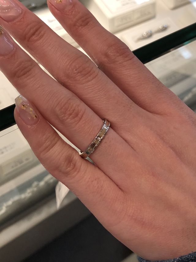 真ん中のラインがゴールドになっているデザインを試着しました。