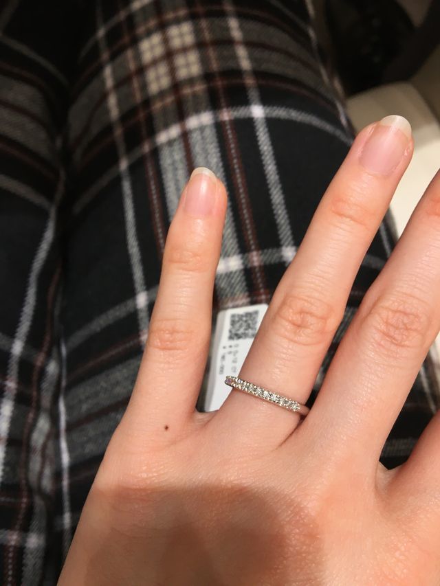 豪華さと使い勝手のバランスを考えてダイヤモンドが埋め込まれているハーフエタニティを探していました。両端のダイヤモンド横が丸くデザインされているので、ハーフエタニティでありながら柔らかい雰囲気があるところが気に入りました。