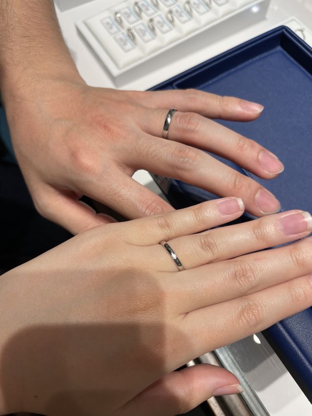 シンプルなストレートタイプをお願いしました。老舗なだけあって品質の良さは感じました。ミル打ちがあるデザインもミキモトさんのものが1番好きでした。太さやダイヤモンドの数などを選べたので、自分の手に合う指輪が見つけられそうでした。