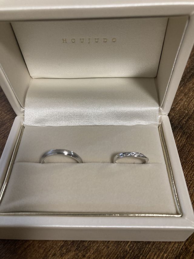 自分の指の長さや太さに合わせて似合うリングを提案してくれる。また、ダイヤモンドの数やつける位置などの細かいオーダーを聞いてデザイン作成してくれるため、ペアリングではないもののデザインを寄せて作ってくれて良かった。