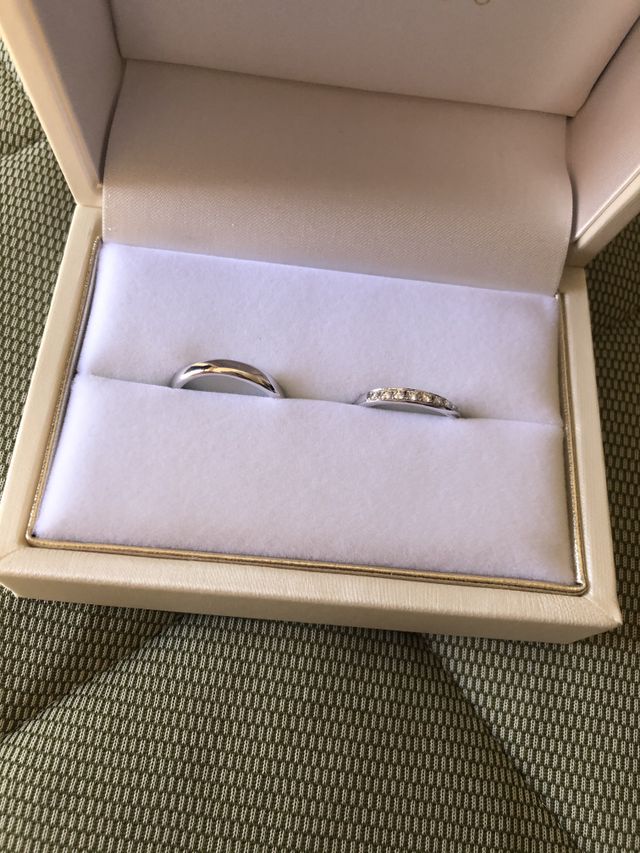 プラスチナ900の材質で、ダイヤモンドも入っています。結婚の準備で購入しましたが、いきなりコロナが発生してしまて、結婚式を延期しました。ただ、時々箱開けて見たら楽しい気持ちが湧きます。やはり、ピカピカのほうが好きでこれを選びました。