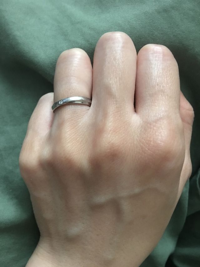 2人でペアの結婚指輪が欲しかった。彼が婚約指輪に高い値段をかけていたので、結婚指輪は安くていいと思っていました。どこのブランドも金額が高く、2人で10万程度がいいねと話していたので、こちらの指輪に決めました。