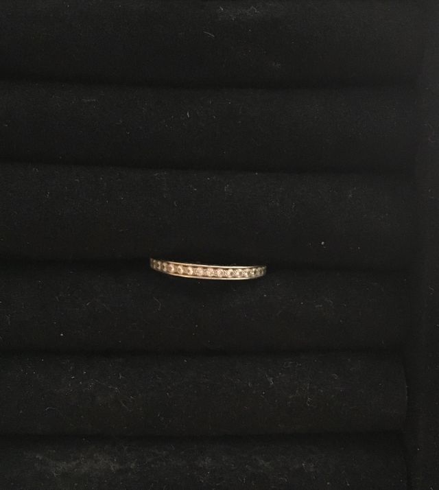 職場で着用しても派手にならず、でも結婚指輪のみでつけても華やかな印象になるエタニティリングを探していました。ヴァンクリーフアンドアーペルのエタニティリングはとてもシンプルですがダイヤモンドもひとつひとつ存在感があり、婚約指輪とつけても邪魔にならなかったので決めました。