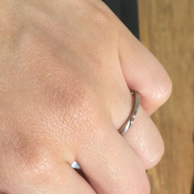 ウェーブ系のリングを探しており、色々なものを試着しましたがこちらのリングが特に自分の指には合っているようで気に入りました。ダイヤモンドは必要なかったので男性用のデザインを女性サイズで造ってもらいました。上品な印象で素敵ですね。