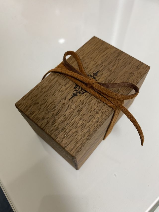 結婚指輪と同じデザインでベビーリングが作れる種類があった事、ケースが宝箱をイメージしているようで、木箱が可愛いです。