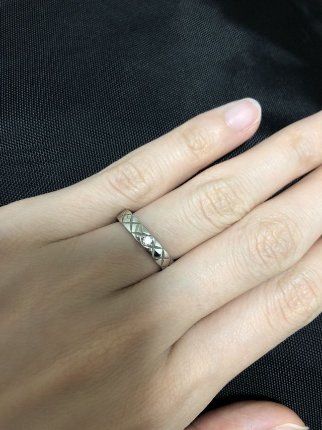 シャネルにあまり結婚指輪のイメージはなかったのですが、可愛いものもかっこいいものもあることがわかりました。今のところ身近な人とはかぶっていません。男女共にデザイン性があるものがお好きならば候補に入れていいと思います!