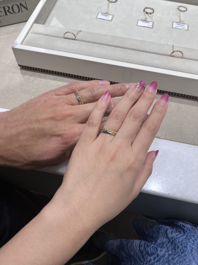 ファセットとクルドパリの重ね付けが最高に素敵でした。結婚の周年記念日に買い足していくのも素敵だなと思いましたが、それぞれ単体だと少し寂しいかなとなり。いきなり重ね付けを買うのも新婚ならではの「結婚指輪らしさ」が無くなるかなと思い泣く泣く諦めました。