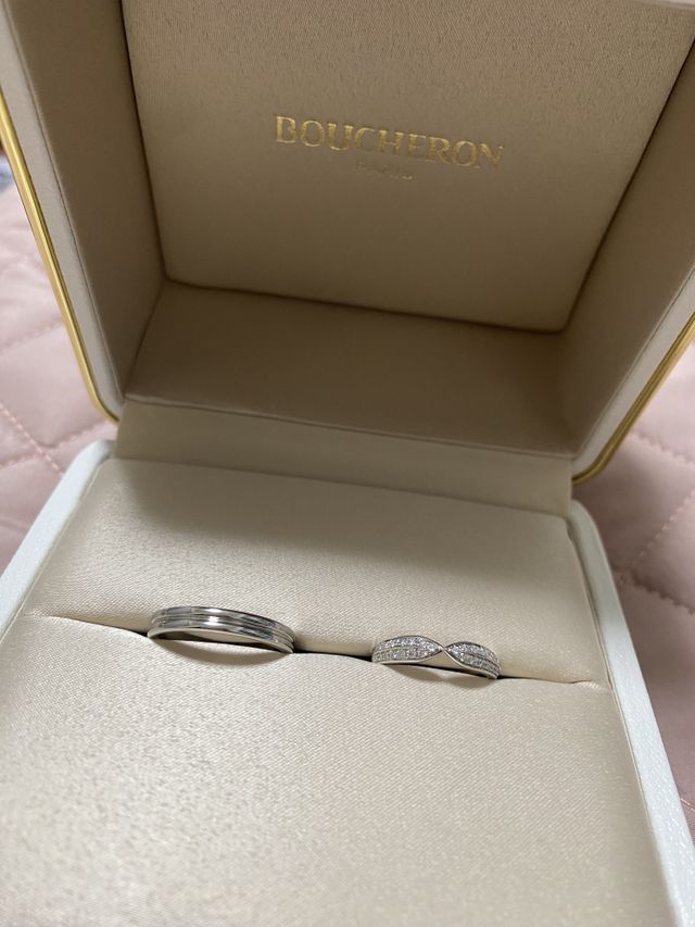 誰もが憧れるであろうブシュロン、フランスのブランドです。360年以上の歴史があり、洗練されたデザインが目を惹きます。プロポーズの時にもらったネックレスがブシュロンのものだったので、指輪もブシュロンで購入したいと思い足を運びました。