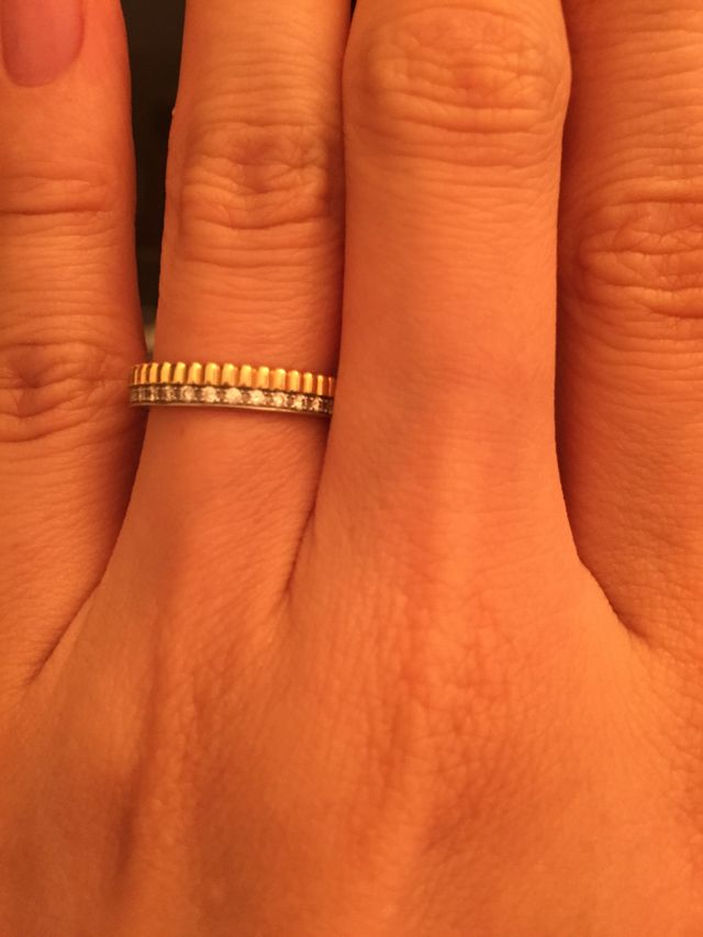 グログランモチーフにダイヤが組み合わさっていてとても可愛く、他のブシュロンのキャトルシリーズとの重ねづけするもできるので、今後増やしていく楽しみもあるので、これにしました。