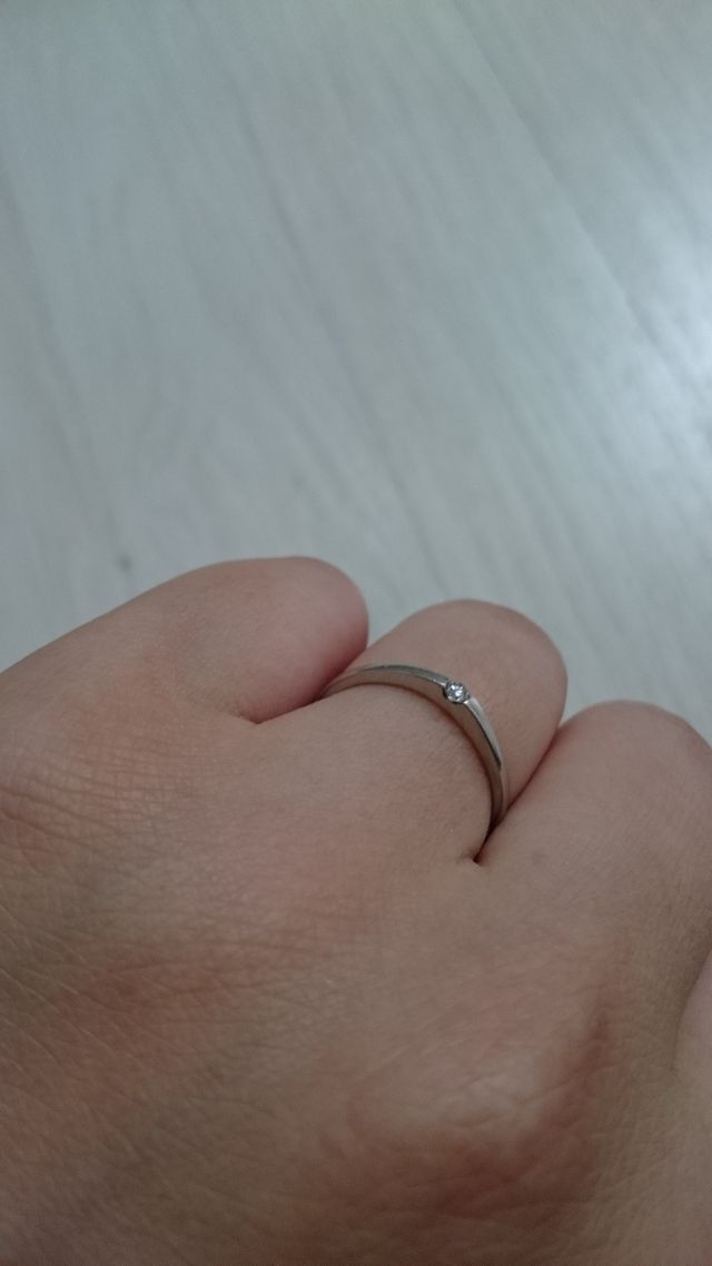 存在感がない分、婚約指輪を引き立たせやすいので選びました。