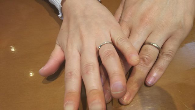 ジュエリーというと身構えたり、入りずらかったりしていまいがちだったんですが、いざ、はいってみると店内は明るい雰囲気で、ステキな笑顔で迎えてくださったスタッフの方に感謝です。おかげさまで、二人で納得して結婚指輪を選べました。ありがとうございます。