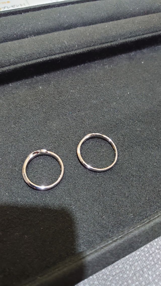 デザインは日常で付けるものとして当たり障りのないものであり且つ、リングがウェーブしてるなど細部に拘ったスタイリッシュなものであること。女性用のリングには小さく輝くダイヤモンドもワンポイントとして素敵。