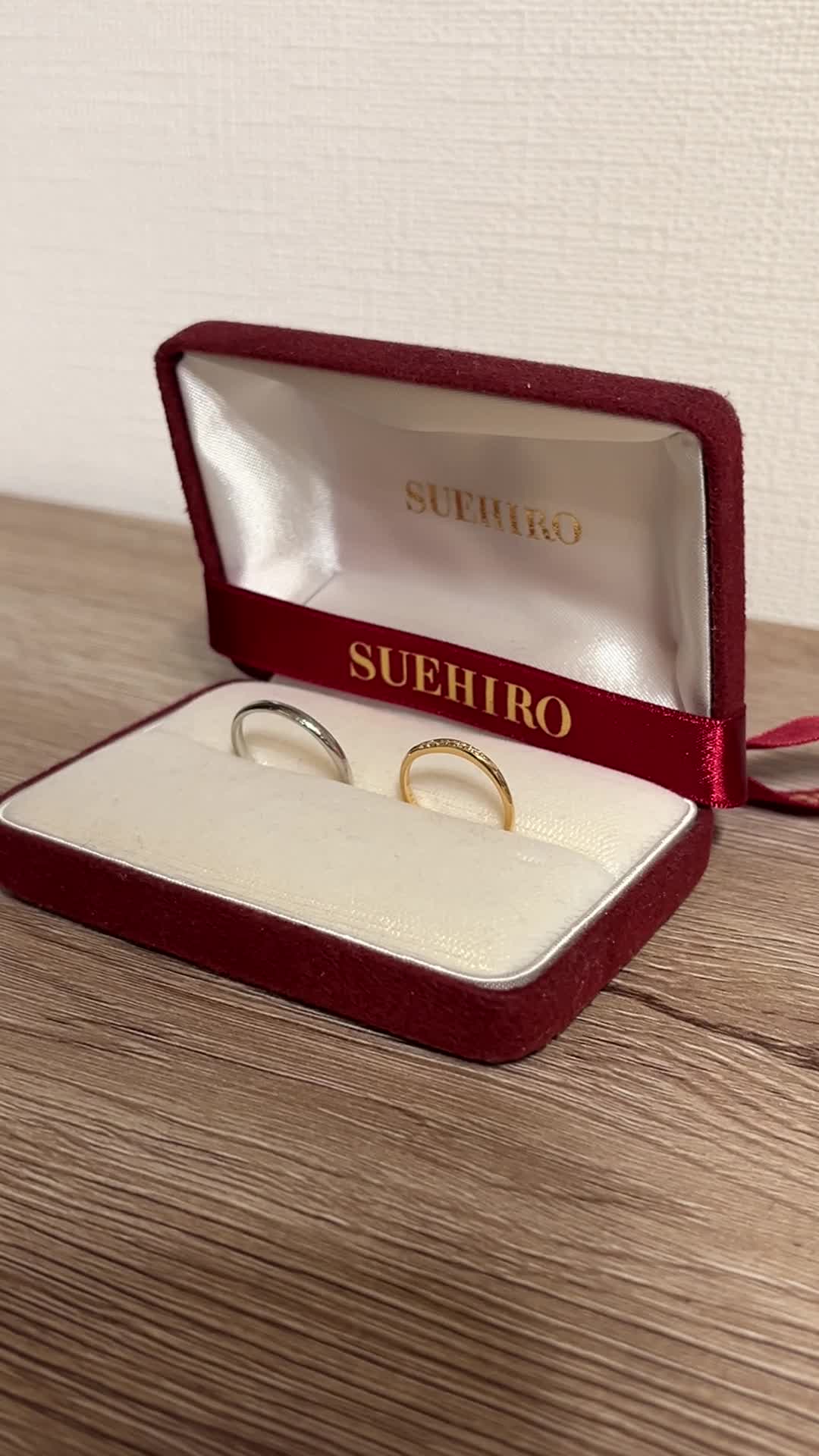 私はピンクゴールド、夫はシルバー。それぞれが気に入るデザインのものを見つけることができました。
