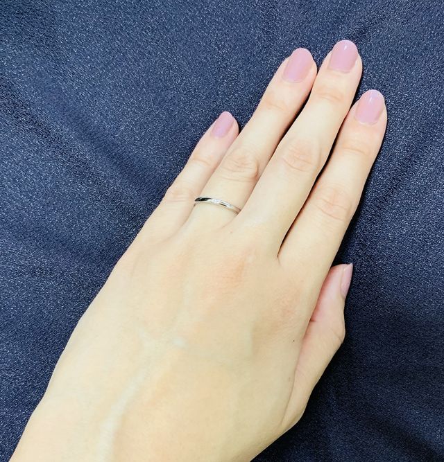 結婚指輪は毎日つけるものなので、細めのシンプルなこちらのリングにしました。