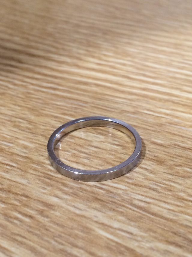 夫とお互いシンプルなものが好みであったため、細身でキラキラしないデザインで探していました。元からアーカーのジュエリーは好きでしたので、見にいってみるとこのダミエリングに出会いました。選んだ素材はプラチナです。細身のボディと、表面にチェック模様の彫りがあるため、貴金属特融のキラキラがなく仕事や日常生活でつけやすいと思いました。