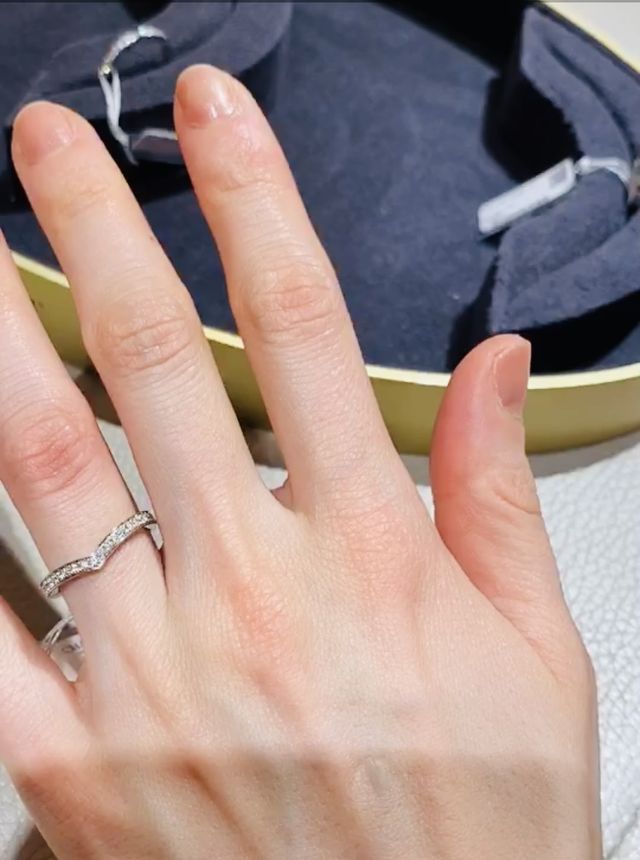 クロスタイプとブイの字の形の指輪を試着しました。ダイヤが敷き詰められているのでとてもキラキラしていて豪華です!その他にもシンプルなデザインの物もあり旦