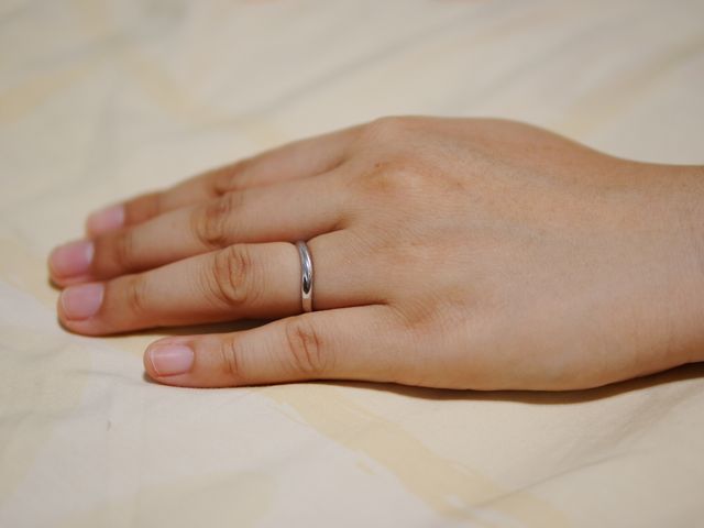 この指輪を始めて見たとき、特別な形を気に入りました。別の商品を見ると、やっぱり簡単なデザイン指輪が好きだとおもいました。一般的な形じゃなくて、指にとってやわらかなく流れを、優しさと愛で溢れますように感じできます。とても細身ですから、仕事でも、邪魔じゃありませんね。
