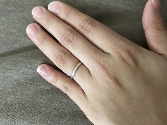 ピンクゴールドだけのものだと安っぽく見えるが、ピンクゴールドが少し入っていることで、指とのなじみがよく、付けていて違和感がない。また、主人がこれが一番しっくりくる!ということだったので、これにした。私もピンクゴールドとの調和がよく気に入った。