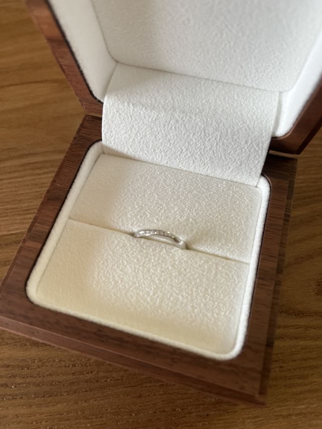 ボックスが木箱で可愛かったです。また、永久保証サービスが充実しており、サイズ直し、石の紛失保証、型直し、爪作り直し、石留め直し、コーティング加工、マット加工の再仕上げ、仕上げ直しができるそうです。