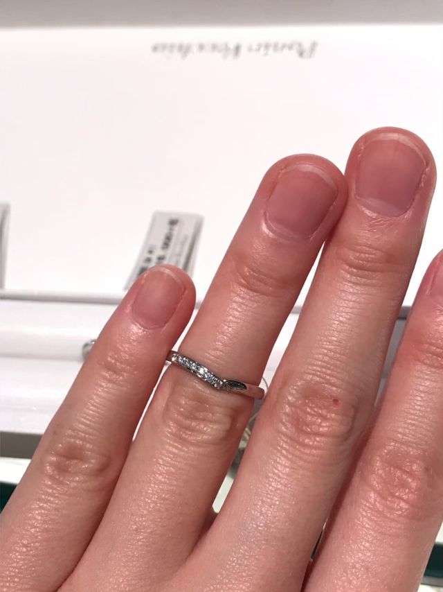 婚約指輪に合わせて少しカーブしたデザインのものを探している中で見つけた指輪です。