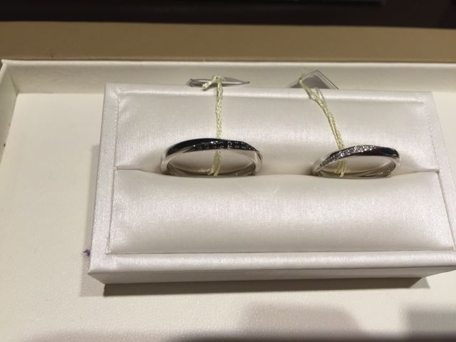 ストレートでダイヤモンド入りを探してこちらを試着しました。男性のものには同じデザインでブラックダイヤモンドが入っています。斜めにダイヤが入っているデザインのためストレートですが指が長く見えてキレイでした。