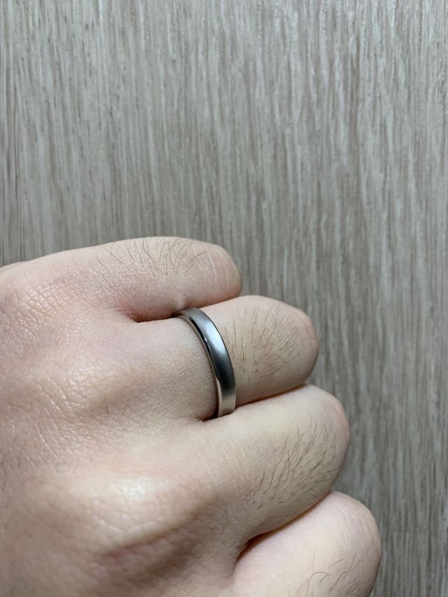 強度を試せる指輪が店頭に置いてあり、自分でパンチで曲げてみるとができます。(たぶん、曲げられません。)