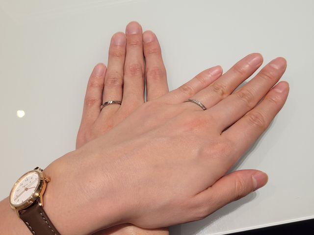 ほどよく上品な装飾で、日常使いできるようなデザインを探しており、こちらを選びました。リングの形は真っ直ぐで、かつ、ダイヤの部分がウェーブになっていると