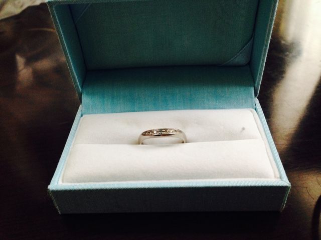 購入時:他にもいくつか試着をしましたが、これに決めた理由は程よいきらめきとシンプルさが合わさっていて、初めて二人で「これがいいね」と意見があったからです。男性と女性でデザインが若干異なっているのですが、男性はほぼ直線で男性的。女性の方はしなやかな感じがしたのでそこもいいなと思いました。
