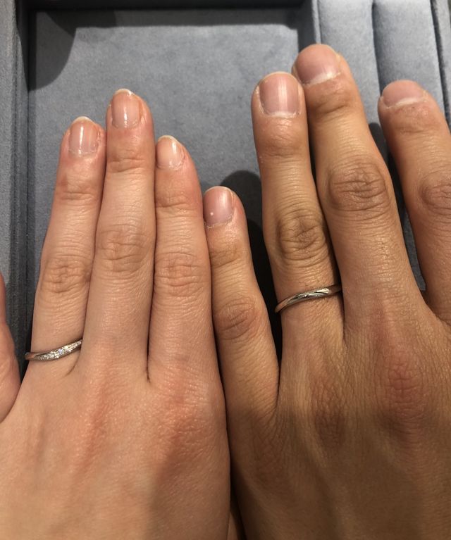 一番の決め手は他店と比べた価格の安さです。ウェーブタイプで探していたのですが、強度がありつつも程良い曲線のデザインだったので、気に入りました。また、ダイヤモンドも華やかすぎず地味すぎず入っていてよかったです。