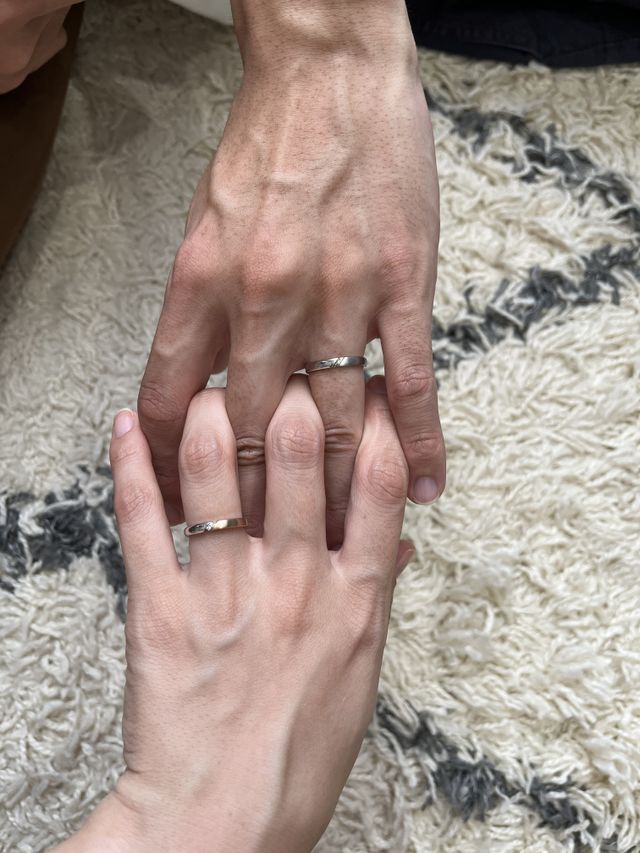 指輪の片側だけ艶消し加工できるのが良かったです。特にピンクゴールドの方を艶消し加工して大正解でした。