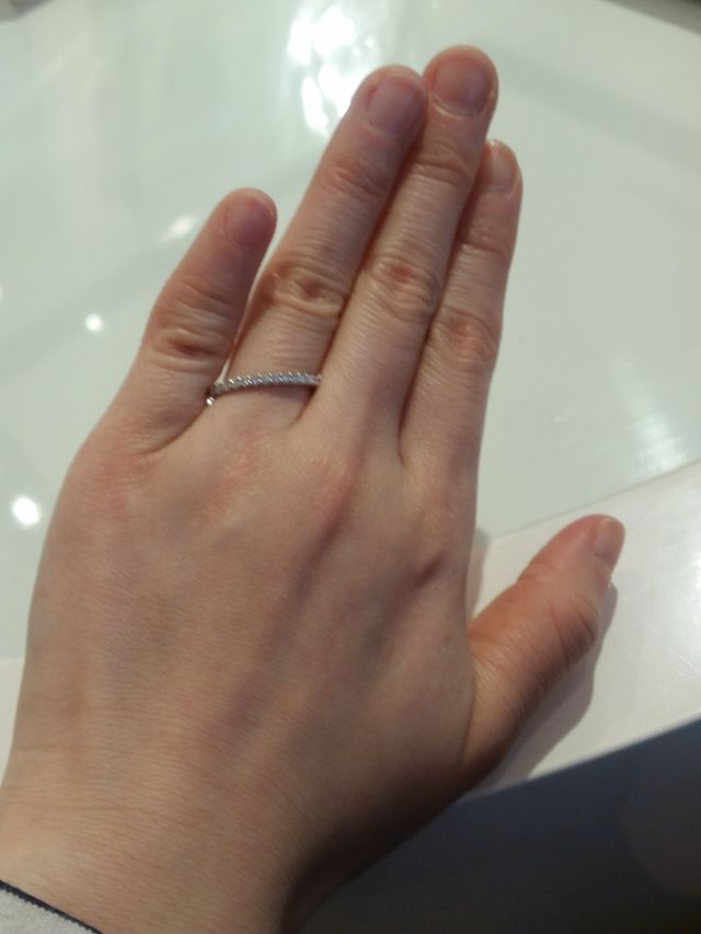 シンプルなハーフエタニティリングを探していたので、紹介してもらいました。ほかのブランドさんでもありそうなリングですが、フォーエバーマークのということで、ダイヤには絶対の安心感があるブランドと紹介されました!