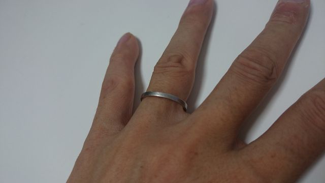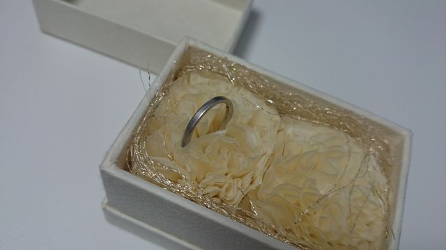 夫婦とも30代半ばでの結婚だったため、あまり派手派手しくない控えめで大人っぽい指輪を探していた。この指輪は、全体が上品なつや消し加工されており、かつシンプルで細身のデザインだったため、普段つけ続けるのに違和感がないと思ったため。
