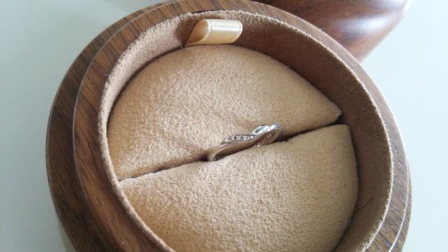 前に購入していたエンゲージリングと同じブランドだったことと、一緒に着用できるようにセットになっていたデザインが決め手でした。ハートがモチーフになっていて、ハートの半分の部分にダイアが施されていて、華奢なデザインがとても気に入りました。