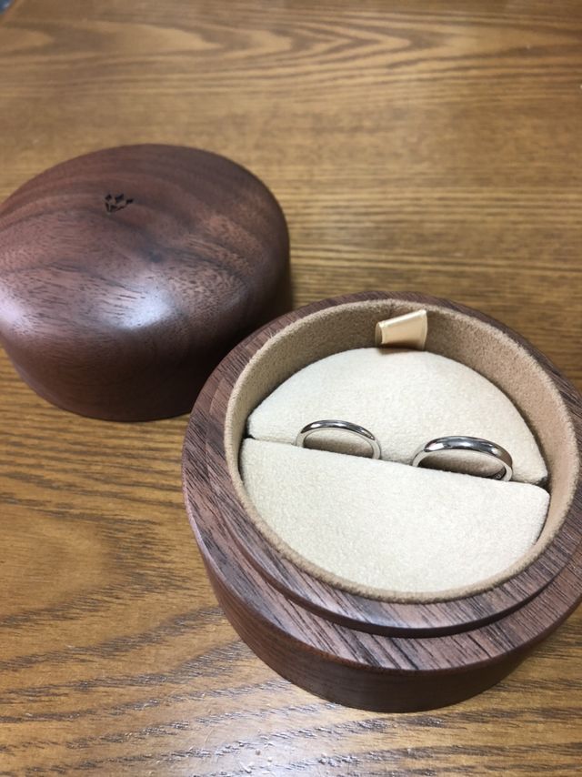 シンプルなものを探していました。細さも丁度よくとても輝いていたので、決定しました。モミジとゆう商品名と自分たちの挙式日が秋とゆうところに運命を感じました。指輪ボックスも、くるみの木から作られているという話をきき、見た目も可愛く長い間使えると思いました。