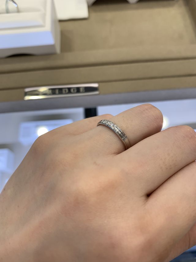 日本人にも似合いやすい華奢なデザインのものが多いので、色々と見比べて試着することができました。あやふやな理想のデザインを先に伝えましたが、他のデザインも気になったものはどんどん試着をさせて頂くことができ自分の理想としているデザインを固めていくことができました。