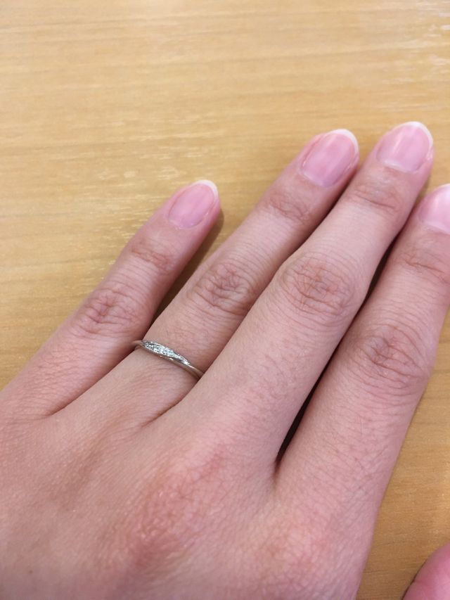 普段から華やかさのある指輪がしたくて、ダイヤが3つ入っているものが良かったのですが、少しねじりが入っているところがシンプルでかわいくて気に入りました!!