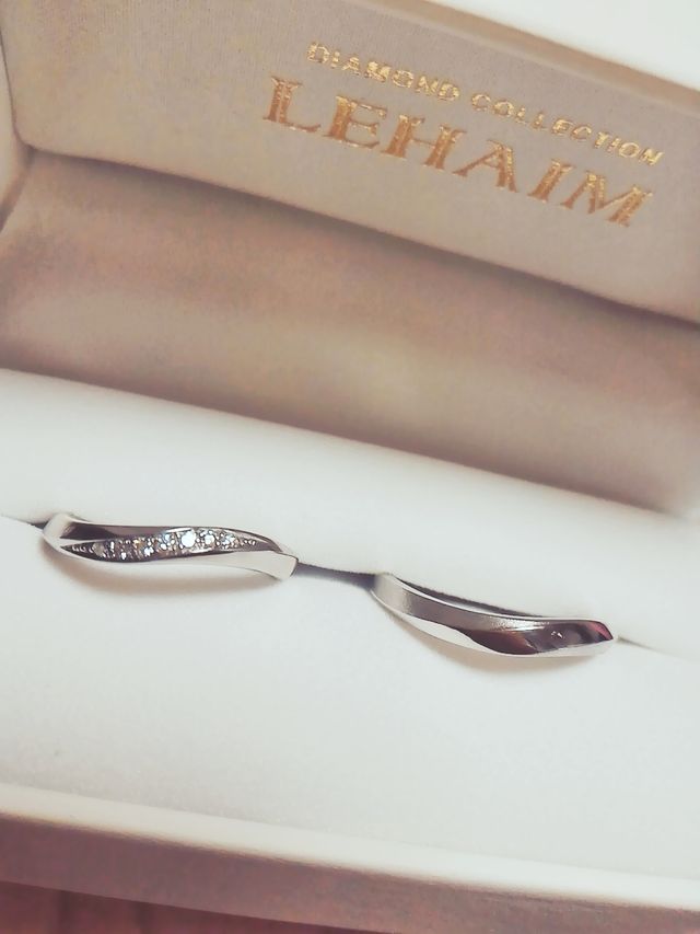 旦那さんの指輪はウェーブの片側だけつや出しのデザインです。