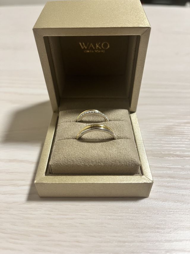 ゴールドの結婚指輪を探していたところ、プラチナとゴールドがクロスしたデザインに惹かれました。