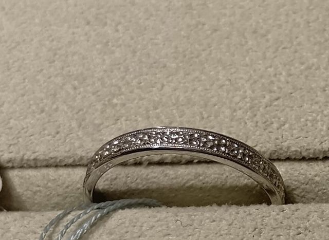 わすれな草のデザインや込められたメッセージが素敵で、ダイヤモンドはついていないものの優しく柔らかく光るのが着用する人間のイメージと合致した。また、婚約指輪との重ね付けをした時により綺麗な光り方をしたのが決め手になった。