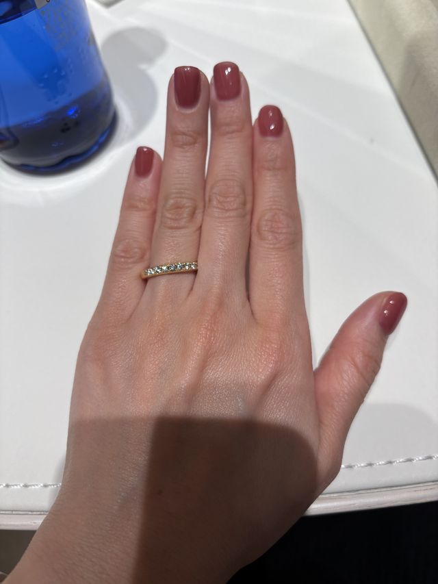 ハーフエタニティで限定して探していた。同じ価格帯で海外ブランドより国内ブランドの方がダイヤの質が良く大きさが大きいため、国内ブランドも何店舗もみて検討していた。その中で和光が一番納得のいくデザインや価格帯だった。