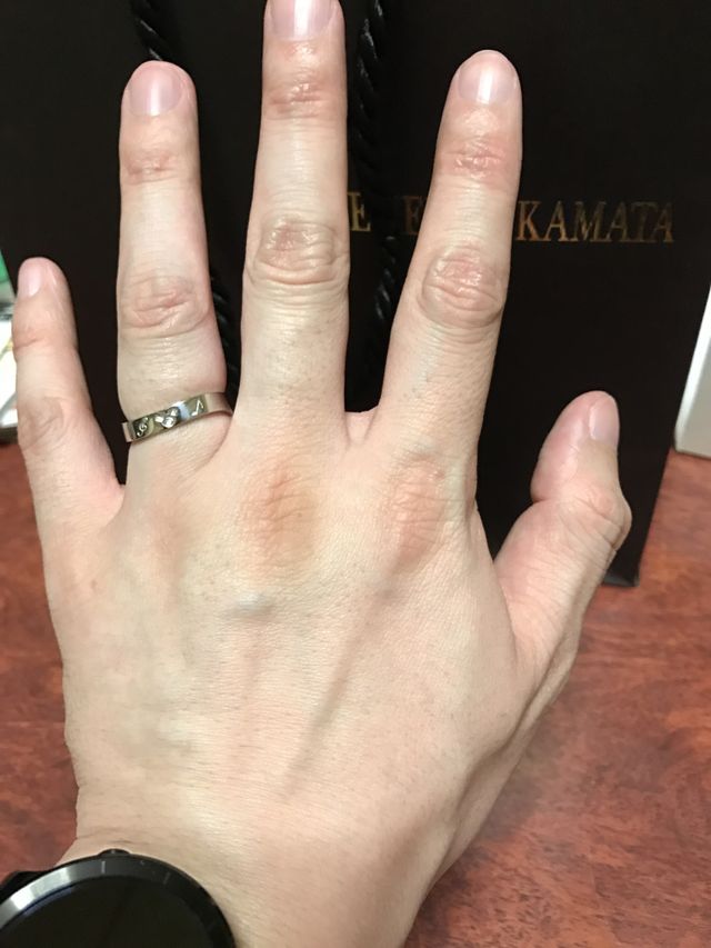 一生身に付けるものなのでお互いよく話し合ってデザインも材質も妥協したくないという思いで指輪を探していたところ指輪の幅、形、外側と内側のデザイン、金属の材質全て自分たちで考えてフルオーダー出来たのでこの指輪を選びました。