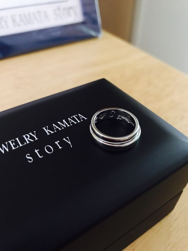 シンプルで素敵。つけた感じも一生つけていけるような肌に馴染む感じ。光沢も選べたのと、内側にはふたりオリジナルのデザインを入れていただき大満足です。フルオーダーですが、追加料金もなく満足です。世界に1つの指輪になりました。
